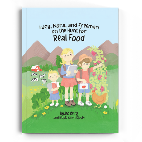 Lucy, Nora, and Freeman on the Hunt for Real Food – Story Book, Coloring Book, Flashcards