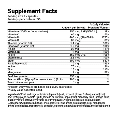 • Natural Prenatal Vitamin with Folate and Omegas – 60 Capsules