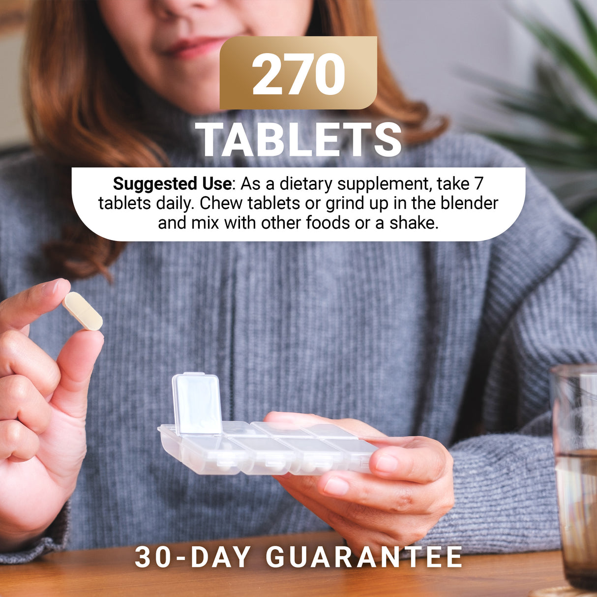 Other Ingredients: Microcrystalline cellulose, dicalcium phospate, organic vanilla flavor, silicon dioxide, magnesium stearate (vegetable source), stevia