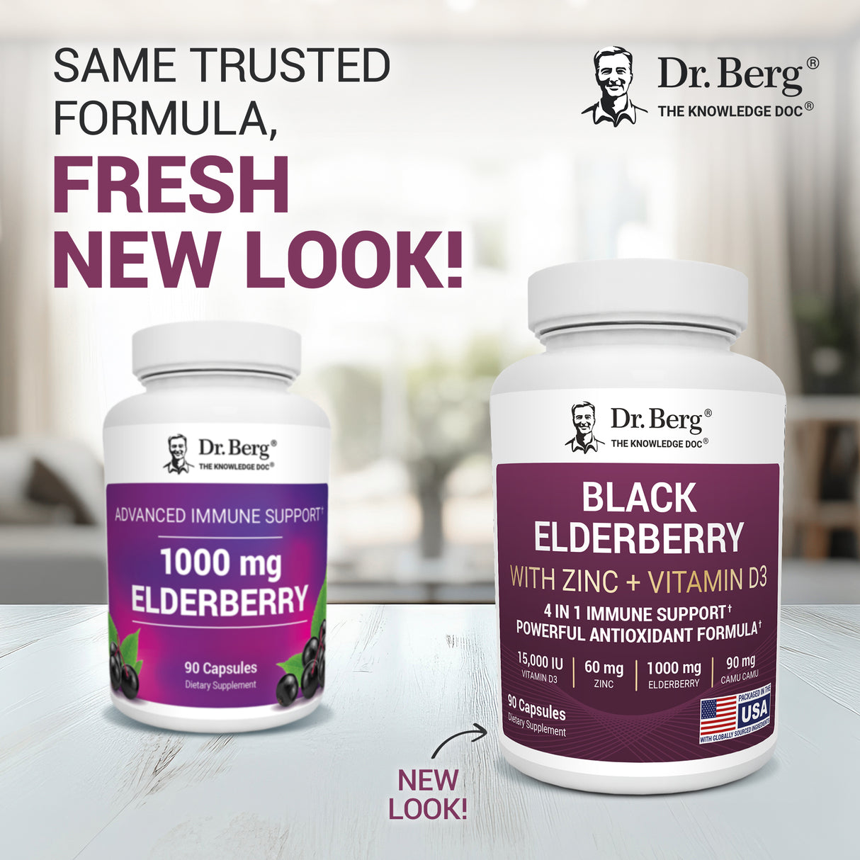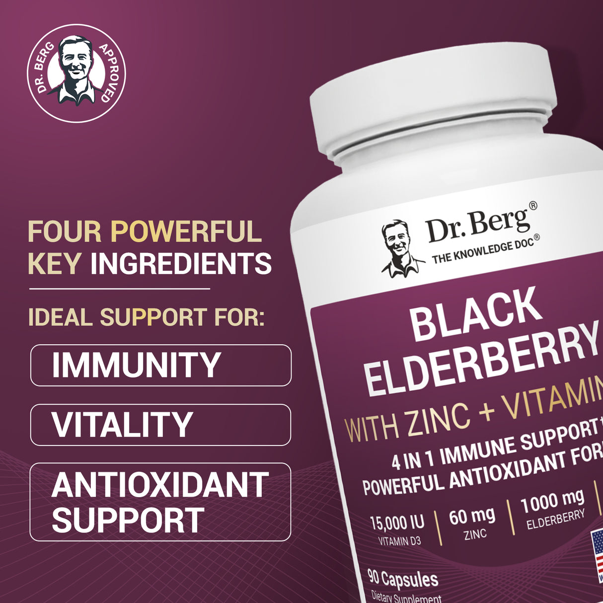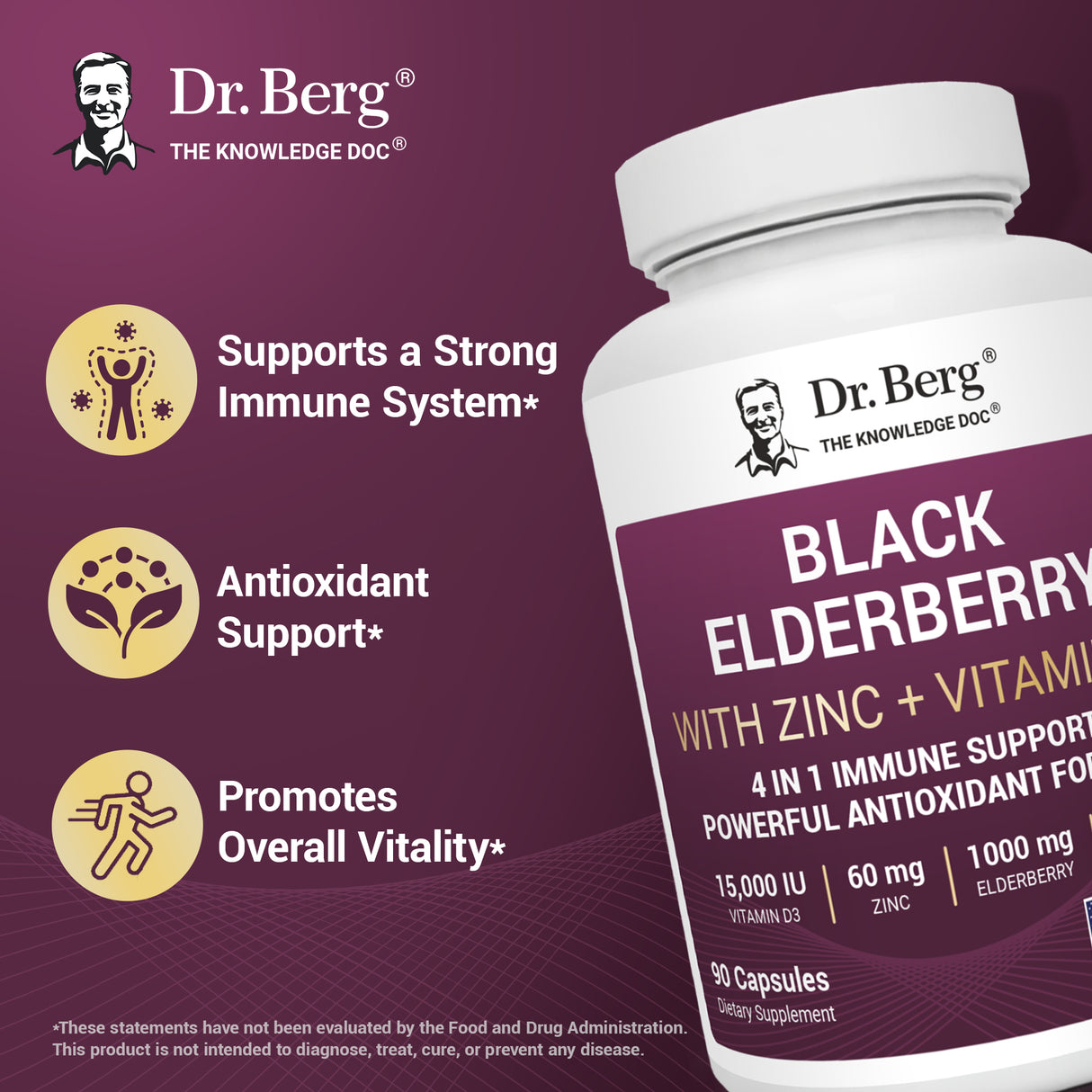 Advanced Immune Support – 1000 mg Black Elderberry with Vitamin D3 & Zinc – 90 Vegetable Capsules Supplement Information