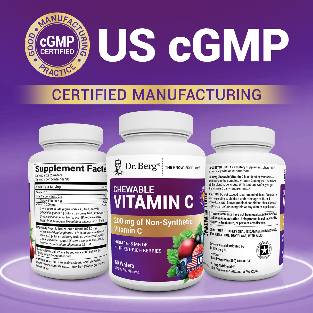 Chewable Vitamin C Complex Made with Organic berries, Non-GMO – 60 Chewable Wafers
