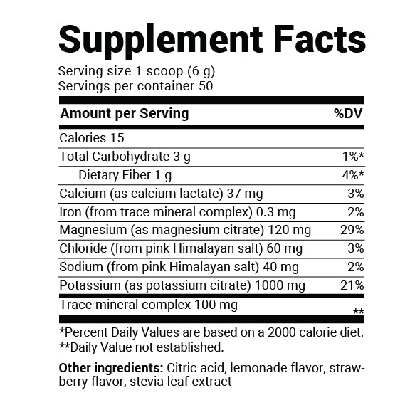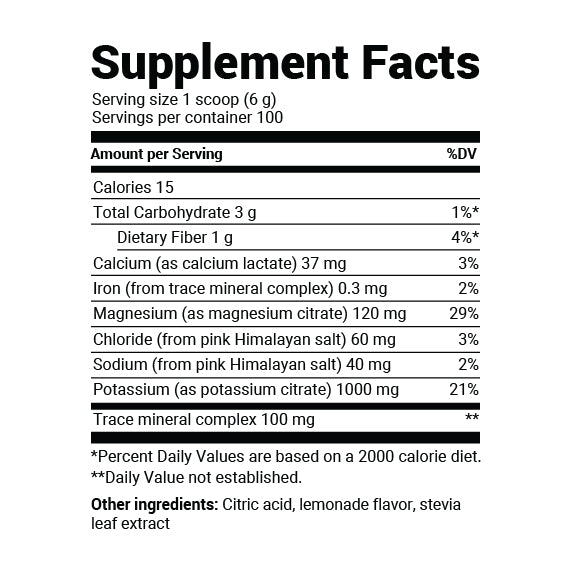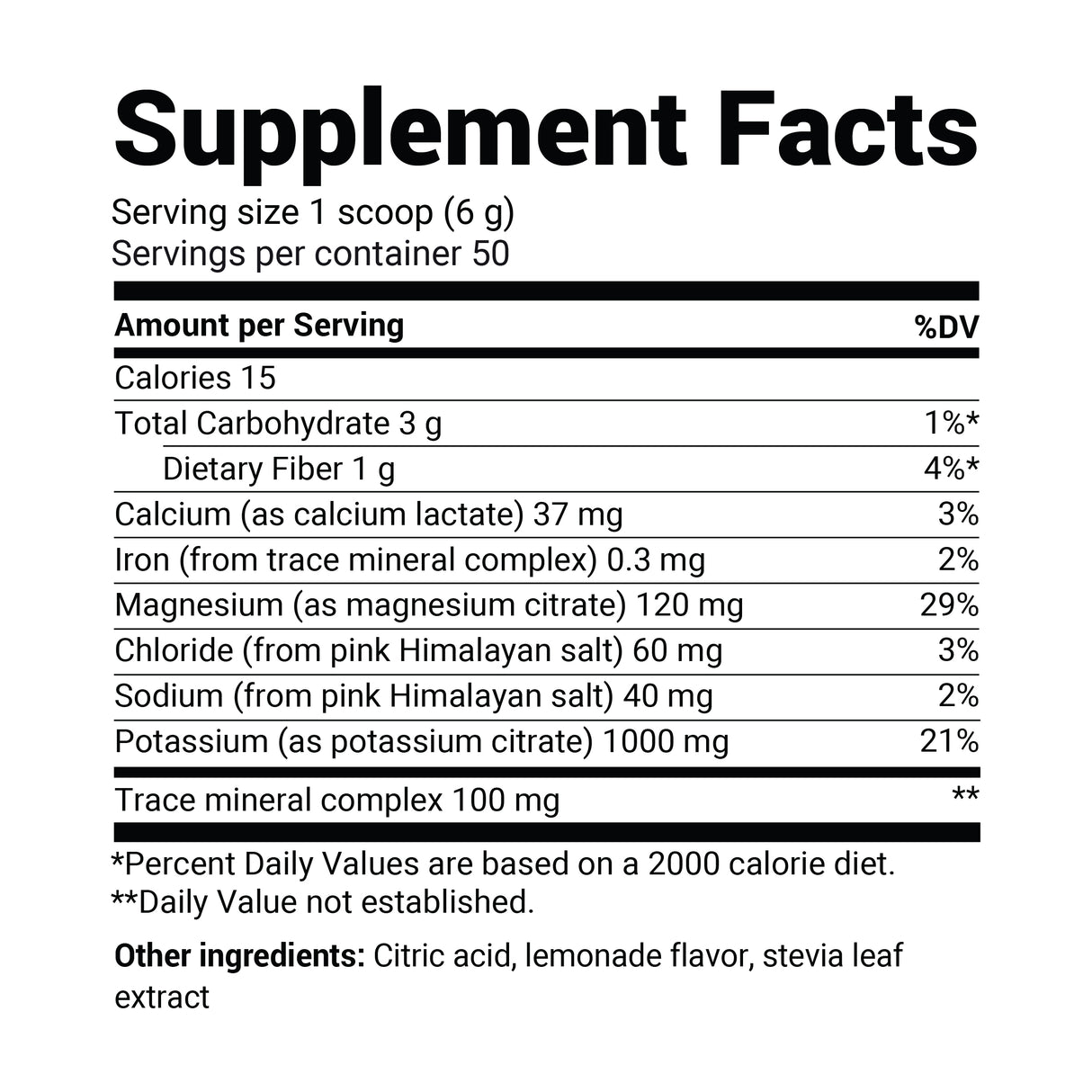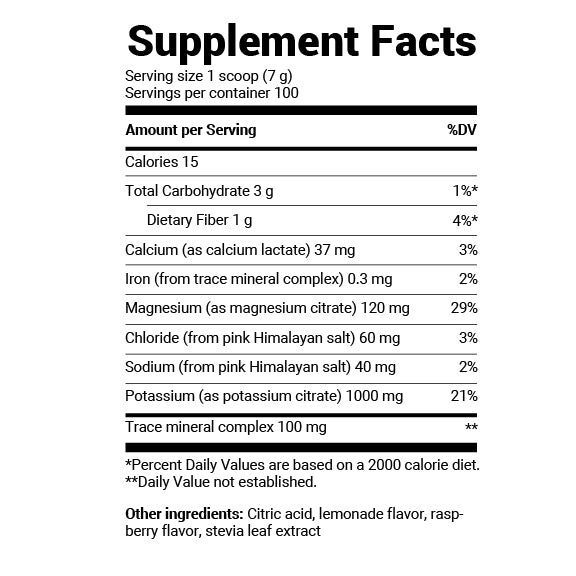 Electrolyte Powder with 1000 mg of Potassium with Magnesium – Raspberry Lemon Supplement Information
