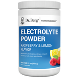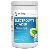 Electrolyte Powder, Lemonade Flavor, 50 Servings, 10.76 ounces, front view, bottle with Dr. Berg branding and a glass of lemonade on the cover.