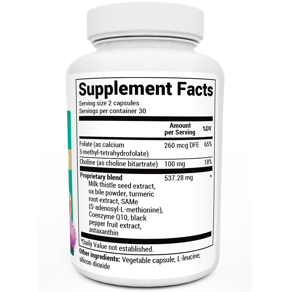 | Proprietary blend Milk thistle seed extract , ox bile powder, turmeric root extract, SAM-e (S-adenosylmethionine), Coenzyme Q10, black pepper extract, astaxanthin |