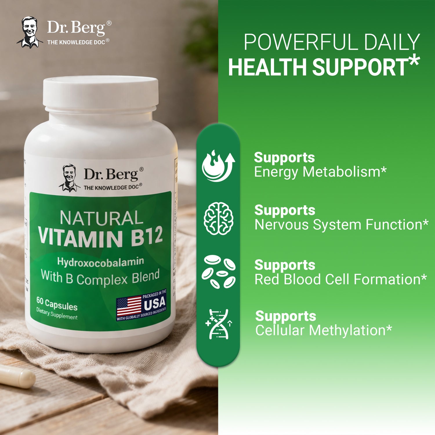 Natural Vitamin B12 – Hydroxocobalamin with B Complex Blend Supplement Information