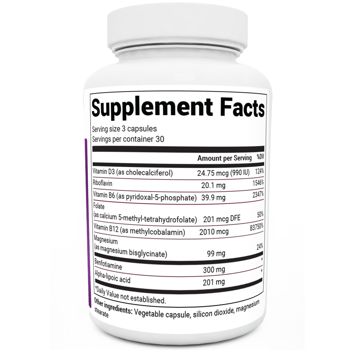 Other Ingredients: Vegetable capsule, silicon dioxide, magnesium stearate