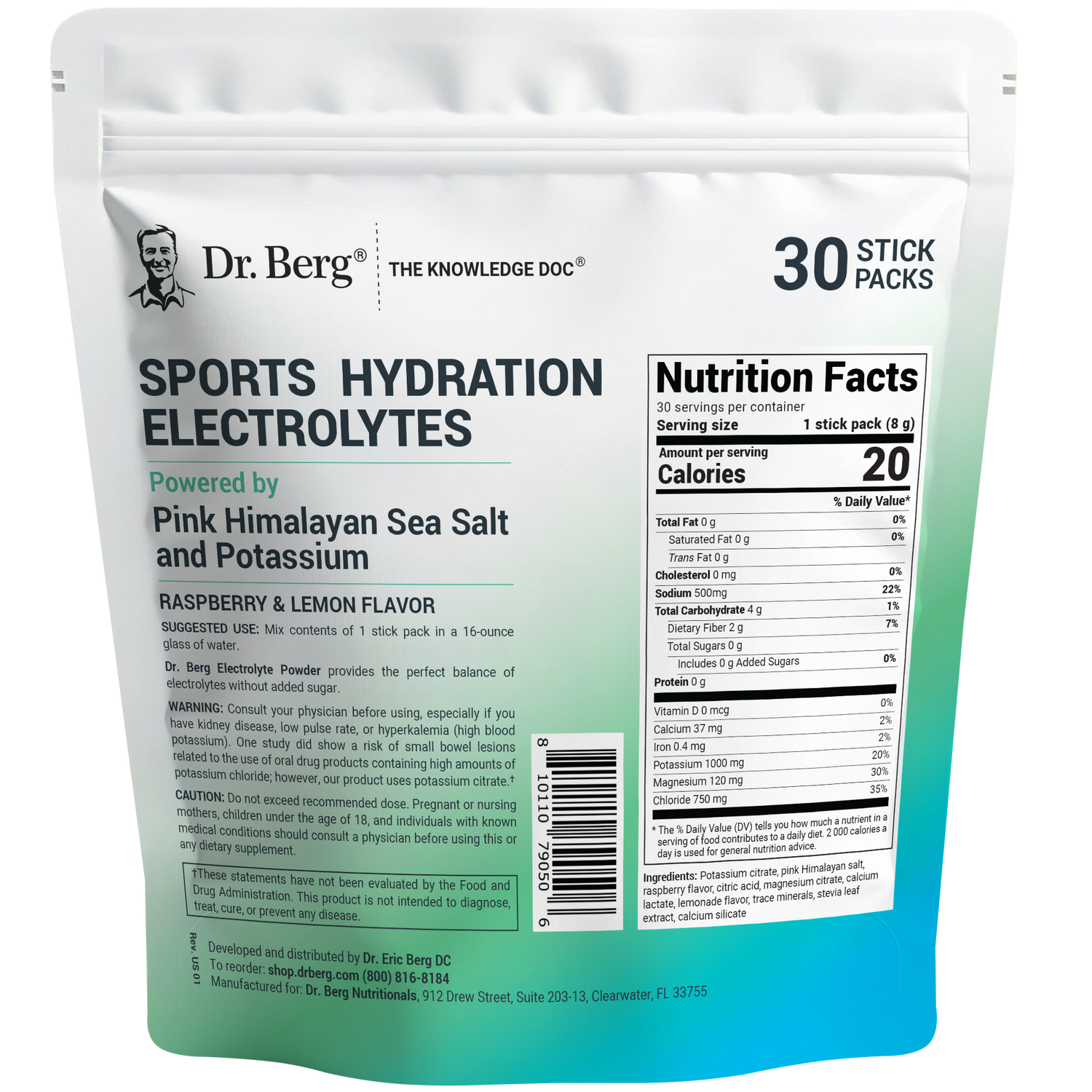 Sports Hydration Electrolytes with Pink Himalayan Sea Salt – Raspberry Lemon – 30 Servings Supplement Information