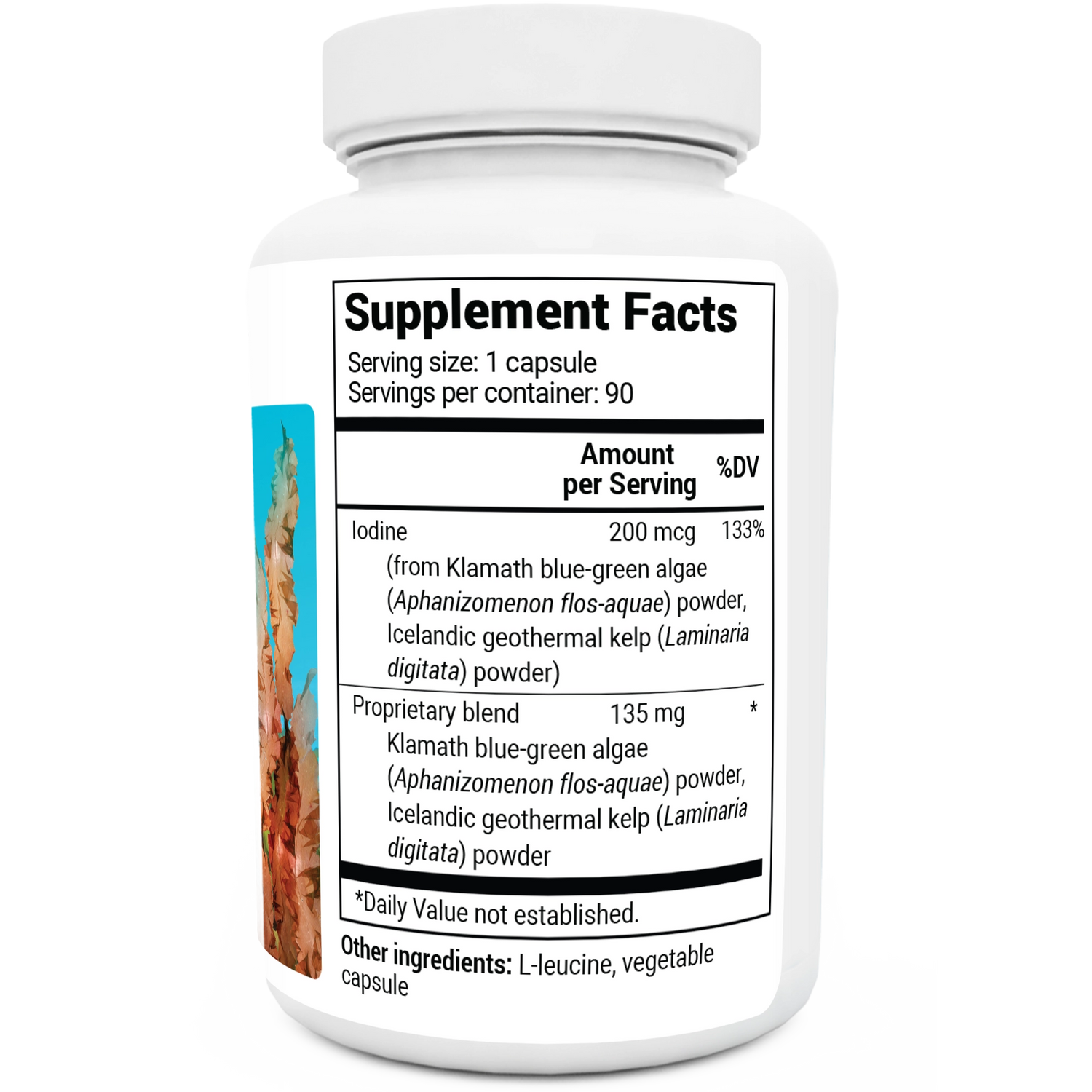 | Proprietary blend Klamath blue-green algae (Aphanizomenon flos-aquae) powder, Icelandic geothermal kelp (Laminaria digitata) powder |